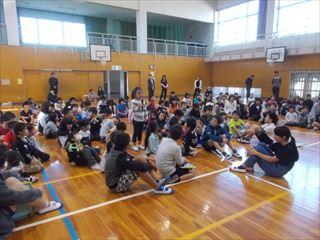 集会が終わってから、修学旅行に行く6年生が5年生に