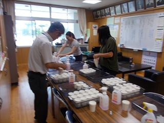 9月14日 投稿日時 : 2018/09/18 学校サイト管理者 9月14日(金)です。今日はフッ化物洗口の日です。朝からボランティアの方々にご協力いただきました。昨日の校外学習で4年生が鑑賞魚競売所の方にいただいた金魚です。「ジャンボシシガシラ」という種類だそうです。4年生が興味深げに見ていました。これからお世話もがんばって下さい。昼休みの運動場の様子です。たくさんの子どもたちが元気に遊んでいました。長縄をしているのは5年生です。
