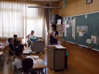 9月11日 投稿日時 : 2018/09/12 学校サイト管理者 9月11日(火)です。昨日は2年生の道徳の授業研究会を行いました。資料の名前は「光るえんがわ」です。北里柴三郎が子どもの時、最初はいやいや行っていた縁側掃除を進んでやるようになるお話で、自分のやらなければならないことを一生懸命努力する心情を育てるのに適した教材です。授業の最初はアンケートをもとに自分がやらなければならない仕事について発表しました。授業の半ばは柴三郎がどんな気持ちで縁側掃除をしたかを深く考えました。終末では、担任の先生が自分のやらなければならないことを続けて頑張り、良かったと思ったことを子どもたちに話されました。やらなければならないことを一生懸命努力することは、とても大切なことだと思います。全てのことをいつもというのは難しいかもしれませんが、小さいころから少しずつ体験させ、身につけていって欲しいと思いました。さて、今日の長洲小学校の様子です。大分涼しくなり、運動場で遊ぶ子どもたちの数が増えたようです。本日は業間に全校集会を行いました。入場の様子です。2年生は静かに整然と入場していました。6年生は低学年の子どもたちが入場するのを待っていてくれました。小さなことかも知れませんが、思いやりある行動が取れて素晴らしいと感じました。校長先生のお話です。ちょボラや立ち止まって挨拶などの話をされました。ちょボラに関連して、校長室前にはちょボラカード入れが準備してあり、ボランティアに取り組んだ子どもたちがやったことをカードに書き入れるようになっています。写真はボランティアに進んで取り組んでくれている子どもたちです。このような姿をよく見かけるようになり、とても嬉しく思っています。子どもたちも喜びながら取り組んでいるようです。こちらは体育委員会です。10月に行われる陸上記録会に向けて、砂場を整地しています。子どもたちの働いている姿はとてもよいものですね。