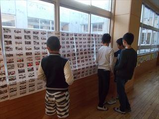 6年生の教室の近くに販売用の運動会や修学旅行の写真が掲示してありました。
