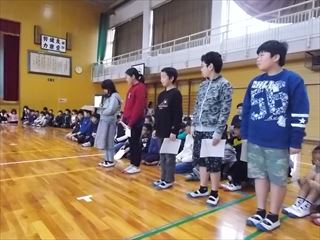 11月28日 投稿日時 : 2018/11/29 学校サイト管理者 11月28日(火)です。ホームページのシステムの更新や出張などで、かなりお休みしてしまいました。今日からまた頑張っていきたいと思います。よろしくお願いします。さて、昨日の様子からお伝えします。昨日の業間に表彰の集会を行いました。科学展や作文コンクール、4コマ漫画など、頑張って取り組んだ成果でしょう、たくさんの子どもたちに表彰が授与されました。賞状をもらえた子どもたちはもちろんですが、もらえなかった子どもたちも一生懸命頑張りました。これを励みに、さらにたくさんのことにチャレンジしてほしいと思います。引き続いて、人権集会を行いました。始めの言葉です。人権について学ぶことや話の聞き方など、6年生が人権集会の目的なども織り込み、立派な挨拶をしてくれました。校長先生のお話です。校長先生は命を大切にすることについて話されました。人権を大事にすることは、自分や友だちの命を大切にすることにつながります。次に、10月に行われた「熊本県人権子ども集会」に参加した子どもたちが、報告をしました。参加して学んだことや感じたことを、分かりやすく発表できました。次に各学年の発表です。1年生は決めつけることはいけないということを学習し、発表しました。2年生は、相手によって態度を変えることはおかしいことを伝えました。3年生は友だちの失敗を笑ったりするのではなく、励ますことの大切さを伝えました。4年生は普段の生活の中で起きそうなトラブルを劇で表現し、トラブルを防ぐにはどうすればよいか教えてくれました。5年生は家族の仕事や、お互いに助け合うことの大切さについて発表しました。6年生は普段の生活の中で思ったことや感じたことなどを勇気を持って発表しました。6年生のメモを取りながら一生懸命話を聞いている姿も印象的でした。最後に全校児童で「友だちになるために」を歌いました。手話もとても上手でした。人権集会でたくさんのことを学ぶことができました。しかし学ぶだけでなく、学んだことを実行していくことが大事だと思います。ご家庭でも、おこさんに人権学習で学んだことを聞いたり、人権について話し合ってみたりしてみてはいかがでしょうか。