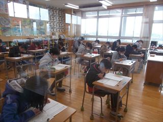 2月21日 投稿日時 : 2018/02/22 学校サイト管理者 2月21日(水)です。今朝も一輪車大会に出場する子どもたちが一生懸命練習をしていました。速く走るのもスラロームもとても上手です。長い距離でも最後まで体力がもつように、長い距離を走る練習もしています。片づけも一輪車に乗ったまましています。すごいテクニックです。花壇前では、栽培委員会の子どもたちが花の水やりをしていました。暖かくなってきたので花の成長も早くなると思います。よくお世話をした分、きっときれいな花を咲かせることでしょう。今日は算数と社会の学力テストを行いました。昨日紹介できなかった5年2組と6年2組を紹介します。5年2組です。算数はなかなか難しかったようです。6年2組です。小学校最後の学力テストの出来はどうだったでしょう。給食後の片づけです。2年生が片づけをした後「たんぽぽ」の歌を手話つきで歌いながら教室に帰っていました。
