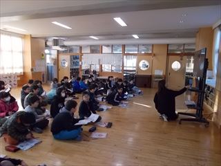12月13日 投稿日時 : 2018/12/14 学校サイト管理者 12月13日(木)です。今日は朝からEタイムを行いました。写真は6年生の様子です。さすが6年生、英語の問題にスラスラ答えていました。発音も上手でした。6年生教室前の金魚です。寒くなってきたのであまり動かなくなってきましたが、元気でした。エサをあげようとすると寄ってきてかわいいです。図書室では新刊のお披露目が行われていました。見ているだけで読みたくなる本ばかりです。明日から貸し出しが始まります。たくさん本を読んでほしいですね。今日のクラブ活動です。屋外スポーツクラブは老人会の方々とグランドゴルフを行いました。体力は自信がある子どもたちですが、おじいちゃん・おばあちゃん方のテクニックにはかなわなかったようです。やり方やルールなどを教わりながら楽しく活動できていました。老人会の方々、寒い中大変お世話になりました。
