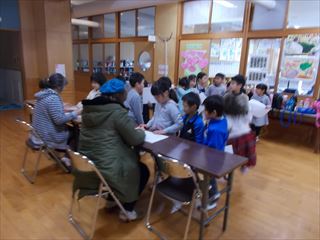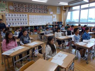 11月17日 投稿日時 : 2017/11/20 学校サイト管理者 11月17日(金)です。朝行われているグーグーペタピンの歌の様子です。姿勢を正して黙想しています。心を落ち着かせ、スムーズに学習に向かうことができているようです。(写真は4年生です。)業間はチャレンジタイムを実施しました。今日もたくさんの保護者の方々にご協力いただきました。いつもありがとうございます。1年生です。2年生です。3年生です。4年生です。5年生です。6年生です。最後にきちんとお礼を言えました。さすが6年生です。休み時間に、自分のスリッパだけでなく、他の人が使ったスリッパも並べている子どもがいました。本当に素晴らしいです。中学年のトイレのスリッパの様子です。3・4時間目の3年生の理科は風の強さによって、物を動かすはたらきがどのように変わるかについての実験を行いました。楽しみながら学ぶことができていました。来週は玉名荒尾教育課の図工美術展が開催されます。どの学級もその準備で忙しかったようです。版画が刷りあがりました。とても上手ですね!