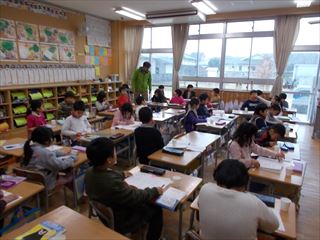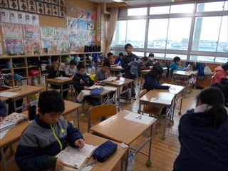 2月9日 投稿日時 : 2018/02/13 学校サイト管理者 2月9日(金)です。朝の長洲小学校の様子です。総務委員会の子どもたちが国旗や町旗を揚げていました。毎日子どもたちで行っています。責任を持って仕事をする姿勢がすばらしいと思います。校内美化委員会の子どもが集めたちりを捨てていました。以前に比べてちりの数が減ってきたそうです。とても良いことだと思います。今朝はフッ化物洗口を行いました。ボランティアの方々に準備していただいています。1年生が上手にぶくぶくうがいを行っていました。3日ぶりに4年2組の子どもたちが登校しました。黒板には朝からすることと、先生からの励ましの言葉が書いてありました。子どもたちも友だちや先生と久しぶりに会うことができ、喜んでいました。同じく4年2組教室前には、見学旅行のことをまとめた新聞が掲示してありました。新聞の下には、友だちが読んだ感想などを付箋に書き、貼り付けています。友だちの良いところを見つけることや、新聞をより良くするためにどうしたら良いかのヒントになります。工作展に向けて取り組んでいる、4年生の作品もだいぶ進んでいるようです。形がだいぶできてきました。玉名荒尾立体造形展(工作展)は2月17日(土)~18日(日)に玉名市民会館第1会議室で行われます。開館時間は両日とも9:00~16:30です。※入場は16:15までとなっています。給食時間です。放送委員会の子どもが6年生の子どもたちの6年間の思い出や中学校で頑張りたいことなどをまとめ、放送していました。給食の後片付けです。2年生の牛乳パックはきれいにたたまれ、整理されています。捨てる時まで美しくまとめられていて素晴らしいです。6年生の靴箱もかかとまできちんとそろっていました。卒業に向けて、子どもたちの心も一つにまとまってきているようです。5・6時間目には、学校薬剤師の山村先生をお招きして薬物乱用防止教室を行いました。対象は5・6年生です。5年生は「たばこの害」について、6年生は「薬の正しい使い方等」について、たくさんのことを教えていただきました。写真は6年生です。姿勢正しくしっかりと話を聞くことができていました。