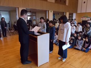 12月21日 投稿日時 : 2018/12/25 学校サイト管理者 12月21日(金)です。今朝は図書室が大賑わいでした。新刊が入っており冬休み前で3冊借りることができることもあって、たくさんの子どもたちが列をつくっていました。冬休みは普段より少し時間があるので、是非たくさんの本に親しんでほしいと思います。5校時の集会の前に、玉名荒尾の美術展の表彰を行いました。代表で6年生と4年生が賞状を受け取りました。校長先生のお話です。校長先生は「命を守ることの大切さ」について話されました。年末年始は交通量も多く、みんな急ぎがちです。交通ルールを守って、楽しい冬休みにしてほしいと思います。生徒指導の先生のお話です。校区の危険個所や冬の遊びについて話されました。健康についての話です。年末年始はつい夜更かししがちですが、早起きをして体内時計をリセットしましょうと話がありました。最後に校歌を歌いました。平成30年最後の校歌です。みなさんよい冬休みを過ごしてください。