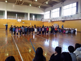 6年生を送る会では、各学年から心のこもった送る言葉や歌など各学年から発表してもらい。6年生は来年度頑張って欲しいことと先生方への感謝の言葉を発表しました。