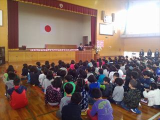 就任式では、新しく長洲小に来られた5人の先生方と6人の新入生の紹介がありました。