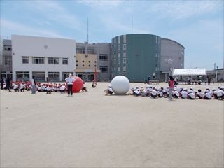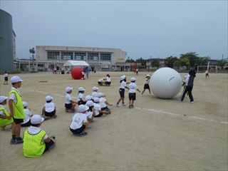 23日(火)の全体練習は大玉送りを行いました。