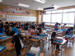 集団下校他 投稿日時 : 2017/06/21 学校サイト管理者 19日(月)は集団下校を行いました。前よりも静かに、素早く集合することができるようになりました。20日(火)は朝からEタイムを行いました。3.4年生は、英語のDVDで発音の練習をしたり、アルファベットを覚えたりしました。靴箱の様子です。2年生の靴がきれいに並んでいました。みんなのお手本となりました。5年生は教室でメダカの観察をしています。理科の授業では、メダカの卵を解剖顕微鏡で観察しました。
