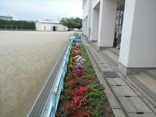体力向上他 投稿日時 : 2017/06/22 学校サイト管理者 21日(火)は高学年のEタイムを紹介します。今日の5・6年生のEタイムはテキストを使っての学習です。聞き取りをしたり、スペルを書いたりとがんばって取り組んでいました。5年生はCDの準備も自分たちでやっていました。さすが高学年です。業間には体力向上を行いました。今日の種目は「ドッジボール」です。みんなで仲良く協力しながら体力を高めることができました。子どもたちが植えた校庭の花もきれいにさいています。学校にお立ち寄りの際にはぜひご覧ください。