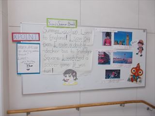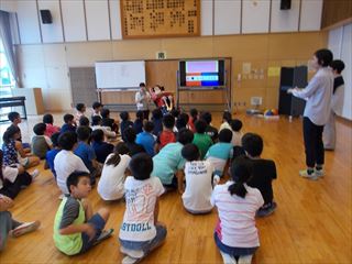 9月4日 投稿日時 : 2017/09/05 学校サイト管理者 4日(月)は2校時に4年生が荒尾支援学校の子どもとの交流を行いました。4年生は今までも何度も交流を行っています。初めに挨拶をして、クイズをした後、ゲームなどをして楽しみました。交流することでお互いのことをより深く理解することができます。学んだことをこれからの生活にいかして欲しいと思います。クイズを行っています。誕生日をあてるクイズです。さすが何度も交流しているだけあって、ほとんどの子どもたちが正解でした。支援学校の先生のお話もしっかり聞くことができました。2本目は掲示についてです。長洲町では英語の研究に取り組んでいて、子どもたちは朝自習や総合的な学習の時間、外国語活動の時間などに楽しく英語を学んでいます。子どもたちに英語に慣れ親しんでもらうために、掲示も工夫しています。階段にはこのような掲示がしてありました。写真、絵などのイメージなどがあると子どもたちも英語を覚えやすいようです。学習環境を整えることも、子どもたちの英語の力を高めていくために大切にしていきたいと思ってます。※今までの出来事は「学校生活」の中に入れています。過去の分を見られたい場合は「学校生活」をご覧ください。
