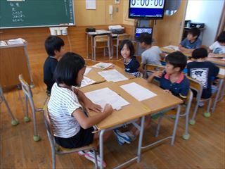 9月15日 投稿日時 : 2017/09/20 学校サイト管理者 15日(金)長洲小です。昨日はインターネットアクセスがうまくいかず、アップできませんでした。その分まで紹介します。昨日は学力充実で、ディベートを行いました。6年1組では、「家族で遊びに行くには東京がいいか、大阪がいいか」という題で、ディベートを行いました。様々な意見や納得させられる考えが出され、子どもたちの話し合いの力も高まってきているようです。積極的に手を挙げています。6年2組です。プリントを頑張っています。5年1組です。5年2組です。9月15日です。フッ化物洗口の様子です。今週は3年生です。保健の先生の歯についての話をしっかり聞いています。業間は台風への備えを行いました。全校児童で行いましたが、特に6年生が大活躍でした。みんな自分の役割を果たして働いています。働いている姿はとてもいいですね!台風が来る前の備えが大切です。とりあえずの準備はできました。昼休みは、ノートコンクールの表彰を行いました。校長先生から賞状受け取り、みんなニコニコです。表彰された子どもたちは、きっと自信がついたことでしょう。やればできると信じ、これからも頑張って欲しいと思います。
