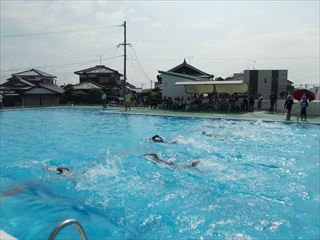 9月6日 投稿日時 : 2017/09/07 学校サイト管理者 6日(水)は校内水泳大会を実施しました。前日までは天候が心配でしたが、晴れの気持ちの良い天気のもと実施することができました。子どもたちは6月から水泳学習を頑張ってきました。今日は一人一人の子どもたちが、きっとその成果を発揮できたのではないでしょうか。保護者の方々におかれましても、応援ありがとうございました。平日にも関わらす、たくさんの方に応援していただいて、子どもたちも励みになったことと思います。中学年の水泳大会です。司会やコールの仕事も、子どもたちが立派に役割を果たしていました。緊張のスタートです。フォームもきれいになり、6月より泳ぎ方がたくましくなりました。友だちの応援もよく頑張りました。保護者の方々も応援ありがとうございました。高学年の様子です。さすが5・6年生、速くて力強い泳ぎです。応援も上手でした。高学年もたくさんの保護者の方々に応援にきていただきました。ありがとうございました。※今までの出来事は「学校生活」の中に入れています。過去の分を見られたい場合は「学校生活」をご覧ください。