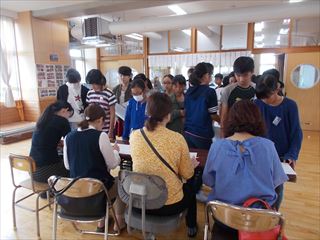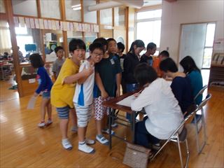 10月30日 投稿日時 : 2017/10/31 学校サイト管理者 28日(土)に行われた昼食会のことをお知らせします。花いっぱい運動とふれあい会の後、PTAの主催で昼食会が行われました。たくさんのパンや飲み物、綿菓子など、子どもたちがとても喜ぶような食事内容でした。また、今までの学校生活や地域とのふれあいの様子をまとめたフォトムービーが流され、みんな楽しそうに見ていました。パンや飲み物などがとても充実していました。子どもたちの大好きな綿菓子です。長蛇の列ができていました。会場の雰囲気が伝わるでしょうか?フォトムービーもとても良くできていました。PTAの方々はこの昼食会のために、料理や飲み物、会場設営など、何度も学校に足を運んで準備して下さいました。フォトムービーづくりもとても大変だったと思います。おかげ様で、地域の方々や子どもたちも大喜びでした。本当にお疲れ様でした。ありがとうございました。さて、本日30日(月)です。今日は6年生修学旅行の日でした。朝から全員元気に旅行に旅立っていきました。学校の子どもたちも登校班や委員会、掃除など5年生を中心として良く頑張っていまいした。(すみません。写真がありませんが…。)さて、10日から本校に来られていた教育実習の先生もいよいよ明日で最後となりました。今日は一日経営で、授業から給食・掃除など、一日子どもたちと関わられました。明日はお別れです。寂しいですが、きっとたくさんのことを勉強されたことと思います。この経験を活かして、さらに頑張っていただきたいと思います。また、今日は1年生と4年生に転入生がありました。それぞれに学級では紹介があり、子どもたちも喜んでいました。新しい学校に慣れるのは大変だと思いますが、早く慣れて、仲良く勉強や生活ができればと思います。朝の4年生の様子です。自己紹介が行われていました。