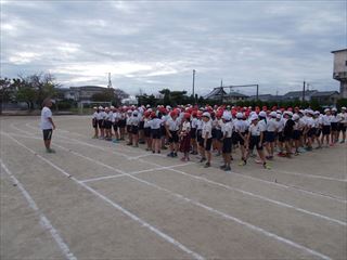 10月17日 投稿日時 : 2017/10/18 学校サイト管理者 17日(火)は最後の陸上練習を行いました。親睦陸上記録会は、会場のコンディション不良のため10月20日(金)に延期となりましたが、子どもたちは最後の練習とあって気合が入っていたようです。運動場に整列して、準備運動をしています。担当の先生から、競技だけでなく応援や姿勢などの態度も頑張ってほしいと話がありました。良い記録が出るたびに歓声が上がっていました。どの種目も良い記録がたくさん出ていたようです。本番も楽しみです。今日は応援の練習も行いました。6年生を中心として、大きな声で一生懸命応援する姿は素晴らしかったです。本番は長洲小学校の子どもはもちろんですが、頑張っている子ども全員を応援して欲しいと思っています。
