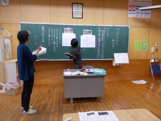 10月25日 投稿日時 : 2017/10/27 学校サイト管理者 25日(水)の5校時に教育実習生の先生の授業研究会を行いました。4年生の面積の授業です。正方形と長方形の面積の求め方は学習していますが、それらを組み合わせた図形の面積を求める学習でした。授業では、フラッシュうカードを使ったり、隣の友達と確認したりと、細やかな配慮がみられました。子どもたちも教育実習の先生が大好きなんでしょう。とても集中して取り組んでいました。真剣なまなざしです。1人学びで一生懸命考えています。みんなの前で自分の考えた面積の求め方を説明しているところです。みんなとても上手にできました。先生も子どもたちもたくさんのことを学ぶことができた授業研究会でした。順序が逆になりましたが、業間に児童集会を行いました。内容は図書委員会の発表です。発表では、読書を勧める寸劇や各学級の今までの読書冊数の発表などがあり、とても工夫されていました。進行も児童が行います。寸劇です。おじいさん役の子が特に名演技でした。読書冊数の発表です。どのクラスもたくさん本を読みました。子どもたちもしっかり見たり聞いたりしていました。読書冊数は1年→1702冊2年→2195冊3年→2425冊4年1組→1320冊4年2組→1228冊5年1組→836冊5年2組→738冊6年1組→489冊6年2組→796冊全校⇒11729冊でした。後期もさらに本を読んでほしいと思います。