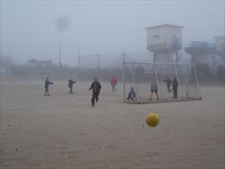 ぬかるんでいる部分もありますが、その部分をさけて元気に遊ぶ子どもたちがいました。