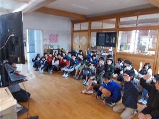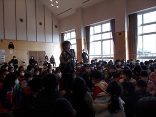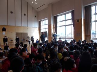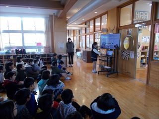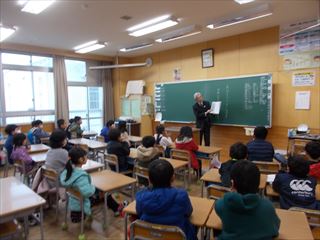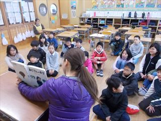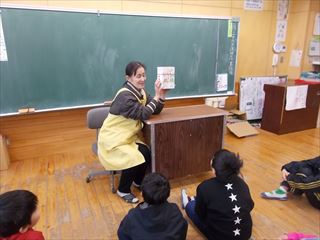 中学年では朝自習の時間に「まほうの小箱」さんによる読み聞かせを行いました。