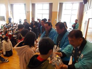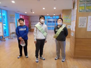校門では給食委員会の子どもたちがあいさつ運動をしていました。