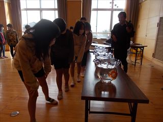 最後にながす羽衣琉金を実際に近くで見て、教室に帰りました。