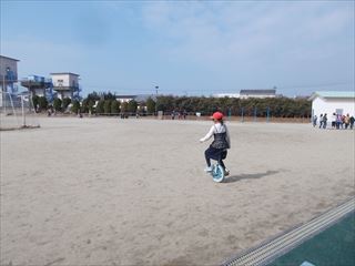3月の一輪自転車大会に向けて、一輪車に乗っている子どもたちもいました。
