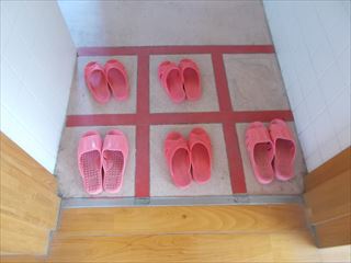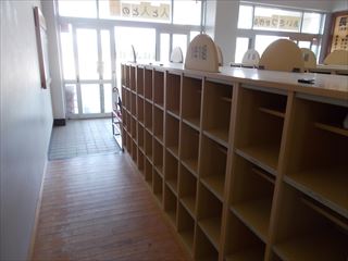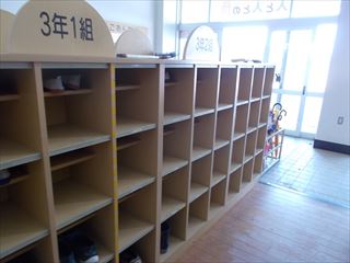 給食前の時間に2年生の子どもが靴箱の靴をきれいに並べていました。