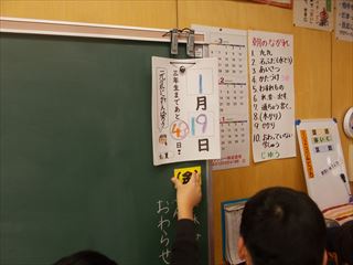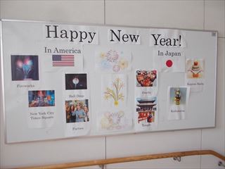 階段の踊り場には、ALTの先生が新年に関する掲示を作成して下さっています。