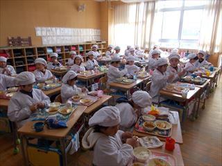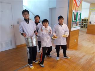 出張でいない職員や欠席が多く各学級で食べきれない給食を6年生が取りに来てくれます。たくさん食べることはとてもいいことです。よく食べて、よく学び、よく遊びましょう。