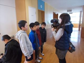 出前授業の後にNHKの記者さんからインタビューを受けている子どもたちがいました。ちょっと緊張してるようでした。