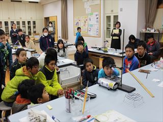 4時間目、3年生が理科で電気を通すものと通さないものを調べる実験をしました。インフルエンザで欠席の子どもたちが多かったので、人数は少なかったですが意欲的に取り組んでいました。