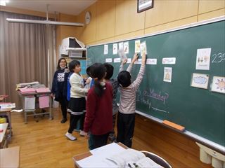 5年生は英語の授業でした。カード等を使って楽しく学習ができていました。