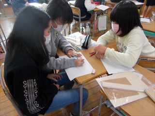 5年生は図工で工作展の作品作りに取り組んでいました。