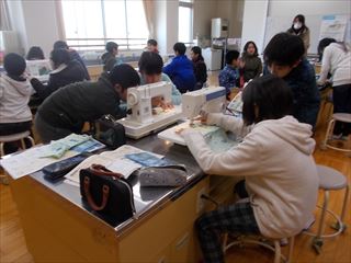 こちらも初めての子どもたちが多かったようですが、安全に気を付けて上手にミシンを使うことができていました。