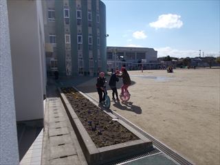 風は冷たいですが子どもたちが元気に遊んでいます。