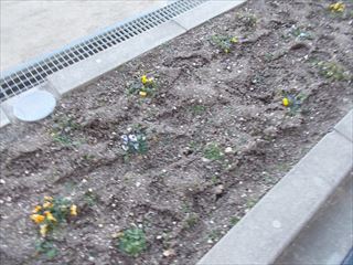 花壇のパンジーも寒そうです。でも少しずつですが成長しているようです。