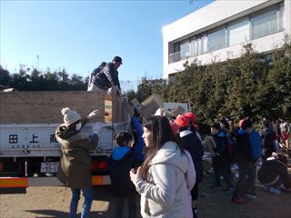 次々と紙類や金属類を積んだ車がきますが、みんなで協力し素早く降ろすことができました。