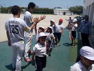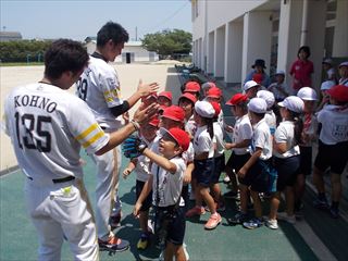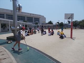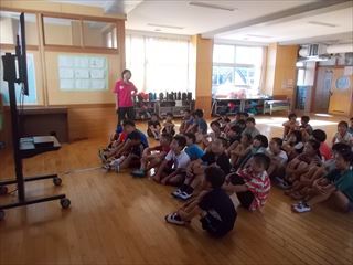 7月13日 投稿日時 : 2018/07/17 学校サイト管理者 7月13日(金)です。本日は2年生を対象に「ソフトバンクキャッチボールキャラバン」を行いました。もと野球選手の方々が来校され、ボールの投げ方や打ち方を教えていただきました。私たちが子どもの頃はよくみんなで野球をして遊んでいたものですが、最近はあまり見かけなくなりました。今回教えていただいている中で、「楽しい」「できた」というような声がたくさん聞かれました。今まであまり野球に興味がなかった子どもたちも、少し興味を持つことができたようです。キャッチボールキャラバンの方々、大変お世話になりました。放課後は水泳記録会に向けての練習を行いました。今日は気温も上がったので、シャワーも気持ちよさそうでした。まだ十分練習ができていないのでトビウオというわけにはいきませんが、みんな一生懸命泳ぎました。記録会まで後約2週間です。目標を持って取り組み、自己新記録が出るよう頑張って欲しいと思います。
