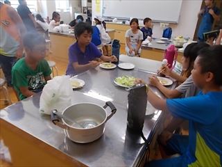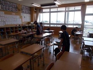 7月19日 投稿日時 : 2018/07/20 学校サイト管理者 7月19日(木)です。昨日は出張でホームページをお休みしました。長洲中学校へ伺ったのですが、卒業生が気持ちの良い挨拶をしてくれました。本当に長洲の子どもたちは素直で優しいなと感じます。さて、朝の様子です、健康委員会の子どもたちが健康観察簿の配付準備をしていました。最近特に委員会活動を頑張っている子どもたちの姿を見かけます。2校時に2年生が荒尾支援学校の子どもと交流を行いました。始めに自己紹介があり、その後歌を歌ったり、手遊び歌をしたりと、楽しく交流することができました。3・4校時には6年生が認知症サポーター養成講座の出前講座を受けました。実際の事例を基に、認知症の方への対応を考えることができました。5年生は調理実習を行いました。野菜サラダ作りです。トマトやキャベツなどの野菜を上手に切り、ゆで卵をつくりました。ゆでる時間が短く、柔らかすぎる班もあったようですが、それも勉強です。5年1組です。5年2組です。手作りドレッシングの味はどうでしたでしょうか?4年生は夏休みの宿題の準備をしていました。分かりやすいように封筒に宿題や提出物が書いてあります。長い夏休みですが、計画的に宿題を頑張りましょう。