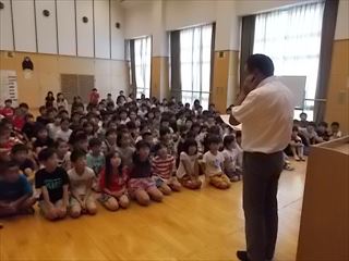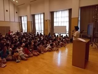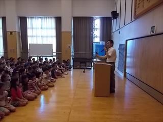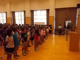 7月20日 投稿日時 : 2018/07/23 学校サイト管理者 7月20日(金)です。今日は夏休み前最後の日、前期前半の終了です。夏休み前は本を三冊借りることができるので、朝早くから図書室前にたくさんの子どもたちが並んでいました。今日は金曜日なのでフッ化物洗口を行いました。写真は2年生の様子です。音楽に合わせて楽しそうに洗口をしていました。こちらも1時間目の2年生です。花壇にマリーゴールドやポーチェラカなどの花を植えています。夏休みにはきっと美しい花を咲かせていることでしょう。2時間目です。5・6年生がのしこら祭にむけて体育館で南中ソーランの練習をしていました。踊りがさらに上手になっているよう感じました。5時間目は全校集会です。集会の前に表彰を行いました。子ども自転車熊本県大会と長洲町を明るくする運動発表会に出場した子どもたちに感謝状を授与しました。集会です。校長先生からは命を大切にすることと心のブレーキをかけることについてお話がありました。命を守るために決まりを守り、楽しい夏休みにしてほしいと思います。子ども自転車大会に出場した子どもたちも、安全のために気を付けることについて発表してくれました。生徒指導の先生のお話です。特に飛び出しには十分注意をしましょう。保健の先生からは手洗いの大切さと、熱中症などについての注意がありました。最後にみんなで校歌を歌いました。前期前半最後の校歌です。集団下校の様子です。気をつけて下校し、楽しい夏休みにしましょう。夏休み中はホームページも毎日更新とはいかないかもしれませんが、少しずつ更新していきたいと思っています。夏休みもよろしくお願いします。