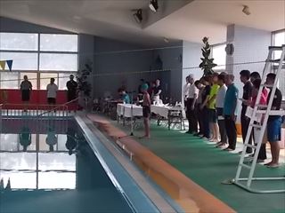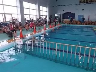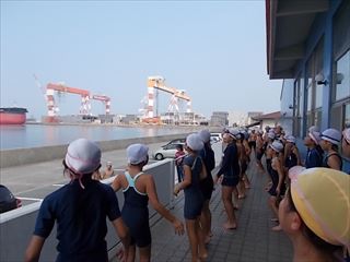7月26日 投稿日時 : 2018/08/01 学校サイト管理者 7月26日(木)です。本日は長洲町総合スポーツセンターで第9回長洲町学童水泳記録会が開催されました。本校からも5・6年生が参加しました。朝早くから子どもたちが運動場に集まりました。みんなやる気に満ち溢れているように見えました。プールへは、バスで移動しました。5年生が先に到着し、準備運動をしていました。造船所が背景で、絵になる光景でした。練習です。学校のプールとは深さや様子が微妙に違うようでした。何度か泳いで体を慣らし、心を落ち着けます。開会式の様子です。開会宣言を本校6年のМくんが立派に発表しました。選手宣誓です。清里小の子どもが代表で行いました。これもとても上手でした。聞いている子どもたちもとても素晴らしい態度でした。さすが長洲町の子どもたちです。泳いでいる様子です。水泳の写真撮影はなかなか難しいです。見えにくくてすみません。応援もみんな頑張りました。時には欠席児童の関係で長洲小だけの組もあり、「レッツゴー長洲」の声のみが響き渡る場面もありました。また、自分たちの学校だけでなく、他の学校の応援をする姿も見られ、とても嬉しく思いました。写真はリレーの様子です。みんな一生懸命泳ぎました。閉会式の新記録賞授与です。今年は六栄小の子どもたちがよく頑張っていたようです。5年生は来年の目標として頑張ってくれることと思います。講評です。本校校長が行いました。自分の目標についてや、みんなを応援すること、事故やけががなくよかったこと、夏休みもそのようにして生活してほしいことを話されました。子どもたちも最後までしっかり話を聞くことができていました。今回は本校からの新記録はなく残念でしたが、自己新記録を出すことができた子どもたちが多かったのではないでしょうか。私も見ていて感動したのは、時間はかかっても最後まであきらめず一生懸命泳ぐ子どもたちの姿でした。一人一人の子どもたちが本当によく頑張ったと思います。ご家庭に帰られてからも、水泳記録会の話を親子でされ、子どもたちをたくさん褒めていただければと思います。