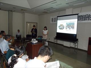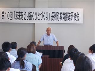 8月1日 投稿日時 : 2018/08/17 学校サイト管理者 8月1日(水)です。本日から8月です。早いもので夏休も三分の一が過ぎようとしています。ホームページも久しぶりの更新となります。さて本日は長洲町の教職員全員が参加した「未来を切り拓く人づくり」研修会の様子をお伝えします。この研修会は長洲町の小中学校の学力向上を目的として開催されており、今年で10年目となります。教育長のご挨拶です。前半は腹栄中、清里小、腹赤小の学力向上の取組の発表がありました。各校、様々な工夫をして学力向上に努めていることが分かりました。後半は荒尾市教育委員会の指導主事の先生をお招きして、荒尾市の取組についてご説明いただきました。荒尾市では「荒尾ベーシック」という取組で、授業改善を目指しているそうです。特徴的なのは学習指導要領に示された「主体的・対話的で深い学び」を実現するために、子どもたち主体の授業づくりをされているところです。具体的には子どもたちが主体的に話し合い、学習リーダーが授業を進める授業を小中学校が協力して取り組んでいるそうです。子どもたち主体の授業なので、意欲も高まります。荒尾市でもまだ始まったばかりだそうですが、長洲町でも良いところを取り入れ、子どもたちの学力向上に活かしていこうと思います。さて、後半は学校の様子をお伝えします。長洲小では見守り隊など、地域の方々にたくさんご協力をいただいています。写真は学級園の様子ですが、きれいに除草されています。これは近所にお住まいの方がボランティアでして下さったものです。除草だけでなく野菜のお世話など、気づいた時に助けていただいているので、学校としても本当に助かっています。刈り払い機で刈ってありますが、すごい腕前です。私はこんなにきれいに刈ることはできません。このように長洲小学校は本当に多くの方々にご協力いただくことにより、教育活動を行うことができています。日頃はなかなか感謝の言葉を伝えることができていませんが、この場をお借りしてお礼を申し上げます。