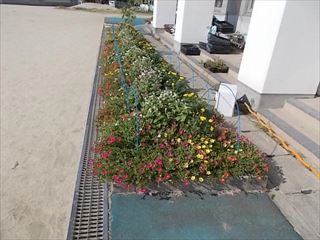 8月17日 投稿日時 : 2018/08/23 学校サイト管理者 8月17日(金)です。ホームページもしばらくお休みでした。今年の夏は本当に暑いですね。お体に十分気をつけられて、お過ごし下さい。さて、久しぶりに学校に来てみると、植物が大きく成長していました。職員室前のゴーヤです。本当に小さかったのですが、もう二階に届きそうです。花も咲き、実ができているものもありました。運動場前の花壇も花が咲き誇っています。夏休み明け、登校する子どもたちを迎えてくれることでしょう。卒業した子どもたちも、時々学校に遊びに来てくれます。長洲の良いところの一つですね!遊びに来たら必ず職員室に「遊んでもいいですか?」と声をかけてくれるところもとても立派だと思います。小さくて見えにくいですが、中学生が遊んでいます。暑いので熱中症には十分気をつけましょう。