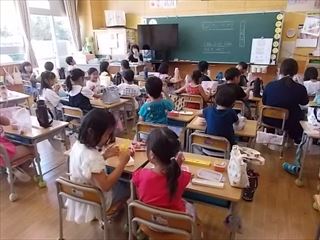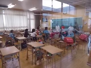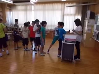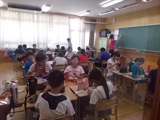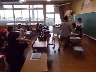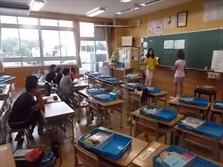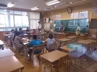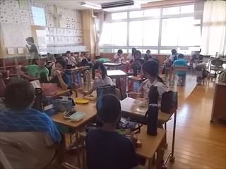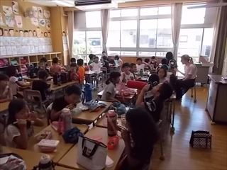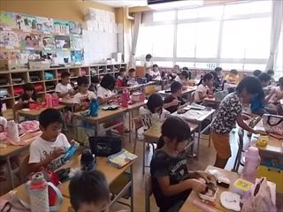 8月28日 投稿日時 : 2018/08/29 学校サイト管理者 8月28日(火)です。今日も4時間授業で下校となりますが、その前に救給カレーの体験を行いました。救給カレーは災害時ライフラインが寸断された時、救援物資が届くまでの72時間の間「命をつなぐ」ための非常食として開発されました。長洲小学校にも常に児童分の救給カレーが備蓄されています。今回は、津波による災害を想定して、多目的ホールで救給カレーを配布し、教室で食べることにしました。置いてある救給カレーを取りに来た子どもたちです。食べる前の準備です。災害時は水が出ないことも考えられるので、その際は消毒液で対応します。救給カレーです。レトルトカレーのように袋に入っています。カレーの配付をしています。きちんと並んでいるところが素晴らしいですね。非常食の意義の説明を聞いています。試食をしています。思ったよりおいしいという感想が多かったようです。写真は3年生です。なかよし学級の様子です。楽しく食事することができたようです。時間は前後しますが、夏休み後初めてのEタイムです。久しぶりなので英語を忘れていないか心配でしたが、上手に発音したり活動したりすることができていました。2年生の様子です。