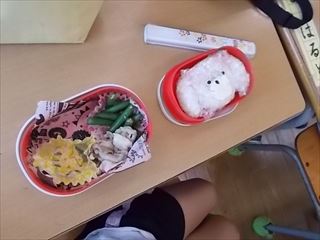 8月29日 投稿日時 : 2018/08/30 学校サイト管理者 8月29日(水)です。今日の長洲小の様子です。5年生が植物の実の学習で、ゴーヤの花の観察をしました。観察をする中で、2種類の花があることに気付き、雄花と雌花があることが分かりました。よく見てみるととても可愛らしい花です。小さな花から大きなゴーヤができるのはなんだか不思議ですね。今日から5・6時間授業です。まだ給食はないので、お弁当です。作って下さったおうちの方々、大変お世話になります。どの教室でも、楽しそうにお弁当を食べる姿が見られました。おうちの方々が作って下さったお弁当、本当に美味しかったようです。お弁当をちょっとのぞかせていただきました。オムライス弁当らしいです。お弁当にすることはなかなか思いつかないですよね。アイデアがすごいと思いました。どのお弁当も愛情と工夫がたっぷりです。中にはこんな可愛いお弁当も見かけました。今週はお弁当が多く、ご家庭には大変ご迷惑をおかけしていることと思います。朝早くからお弁当を作って下さっていることに、本当に感謝いたします。子どもたちも愛情をかみしめながらお弁当を食べることができているようです。あと2日ありますが、よろしくお願いします。