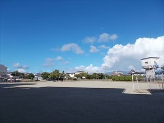 青空でしたが雷鳴が聞こえたので子どもたちを校舎内に入れました。