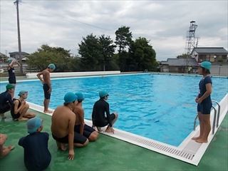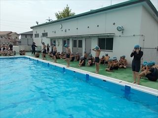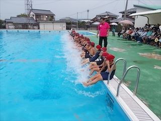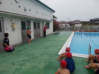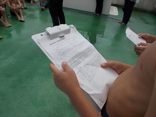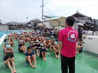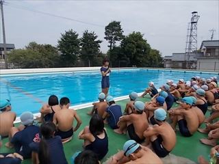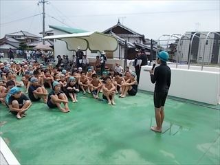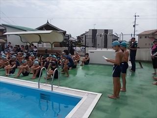 水泳が上手になったことや、監視されたPTAの方々やいつも監視のお手伝いをされている方へ感謝の気持ちを持つことなどのお話がありました。