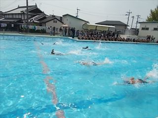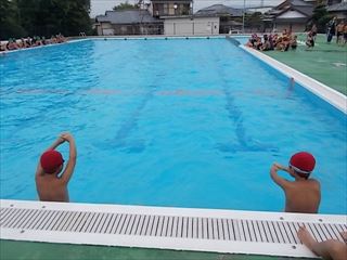今日はまず低学年の水泳大会の様子をお伝えします。