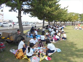 昼食です。頑張った後のお弁当はとても美味しかったようです。