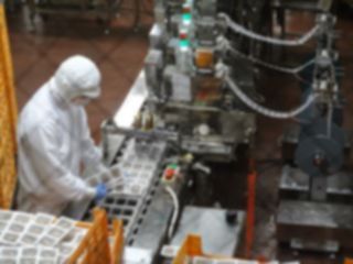 納豆工場で説明を聞いています。みんな真剣な表情です。